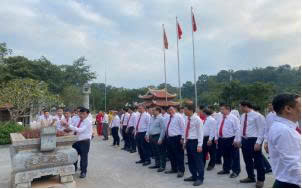 Đến thăm Khu di tích quốc gia đặc biệt Tân Trào (Tuyên Quang), đoàn đã dâng hương, tham quan và tổ chức lễ kết nạp đảng viên tại Đình Tân Trào – nơi diễn ra Quốc dân Đại hội ngày 16, 17/8/1945, sự kiện lịch sử trọng đại, tiền thân của Quốc hội Việt Nam, mở ra bước ngoặt trong Cách mạng Tháng Tám, phát động toàn dân khởi nghĩa giành chính quyền trong cả nước.