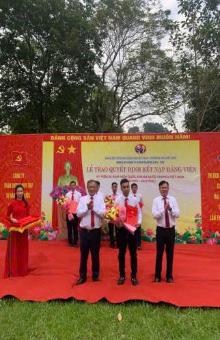 ( Đồng chí Trịnh Vũ Hòa – tặng hoa đảng viên mới kết nạp)