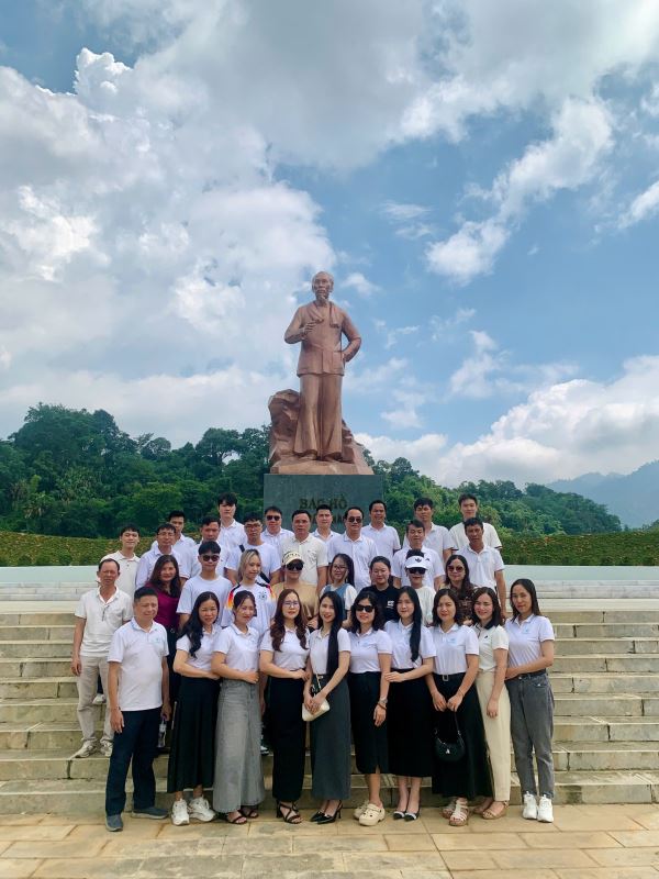 Du khách check in cùng tượng đài “ Bác Hồ ở Tân Trào”