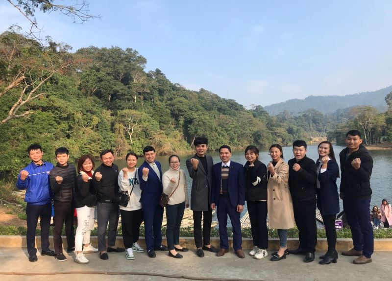 Đoàn chụp hình lưu niệm tại hồ Nà Nưa