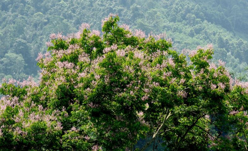 Vào thu, Tân Trào đẹp hơn bởi sắc tím của hoa phách và những tuyến đường hoa rực rỡ khoe sắc hai bên đường.
