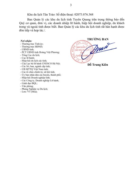 THÔNG BÁO Về việc thực hiện nhiệm vụ đón tiếp khách tham quan, kết nối tour, tuyến du lịch tại Khu du lịch Tân Trào