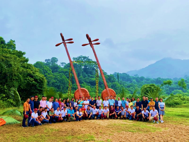 14h00: Đoàn di chuyển lên hồ Nà Nưa, tham gia trải nghiệm: Bơi mảng, nghe hát Then trên hồ Nà Nưa, chụp ảnh check - in tại cặp đàn Tính khổng lồ và cầu hoa Khuôn Pén.